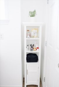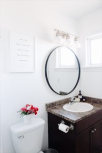 This home project feels like it’s been taking us forever, in reality it really hasn’t. But because it was on our “list to do” since finishing our bedroom it feels over due. Either way with our hectic schedules we managed to do a little something just to freshen it up a little bit and have it flow nicely with our master bedroom. Our hearts are longing to re-do the floors and vanity but with our rookie moves we’ll slowly start to learn the process there and eventually change those up to.