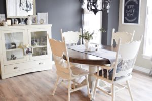 It’s been so much fun and our latest little baby was fixing up our sad little dining room. It’s a place that we use quite often since it’s right beside our busy kitchen. Our table was feeling worn out and shambled and our walls needed a little pick me up in colour. It usually is a sort of dark space when the light doesn’t hit it so it was nice to brighten most of it up! Little changes add up to some really big things.
