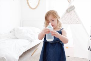 Our littlest girl is trying so hard to grow up walking at 8 months, climbing stairs shortly after, talking full sentences so little. At the same time she reverts just a little to her baby stage. It’s bittersweet for all of us. But for the most part she’s been able to kick a lot of her baby routines like breastfeeding, her soother, her sookie blankie. It’s all starting to come together except her love for carrying around a bottle. Honestly enough this new thing only started a few months ago and I’m starting to see a reason for her new love.
