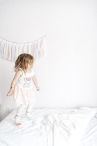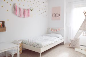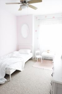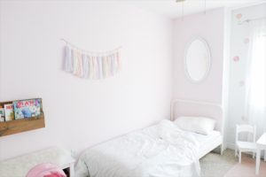We are pink obsessed over here! Well let’s be honest it’s actually Ella, she honestly loves all the colours she has the brightest enthusiasm. But when she saw me roll into her room with paint products and preparing the room her eyes lit up. She was SO excited to see that we painted her wall PINK! Lately, I’ve been feeling that with her bright personality she really needed a room that matched just that. She’s airy, sweet and full of fun! Just like her room.