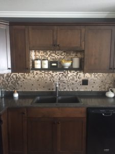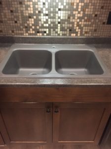 We went with the ALTA Dual Finish faucet in Chrome and Cinder. Pulls out to a very nice length with two different spray features. All very powerful! For the sink we went with a very elegant VISION Dual Sink in Cinder as well. It’s a very easy sink to clean and any left-over residue hides nicely within the colour even if you might have totally forgotten to clean it up!