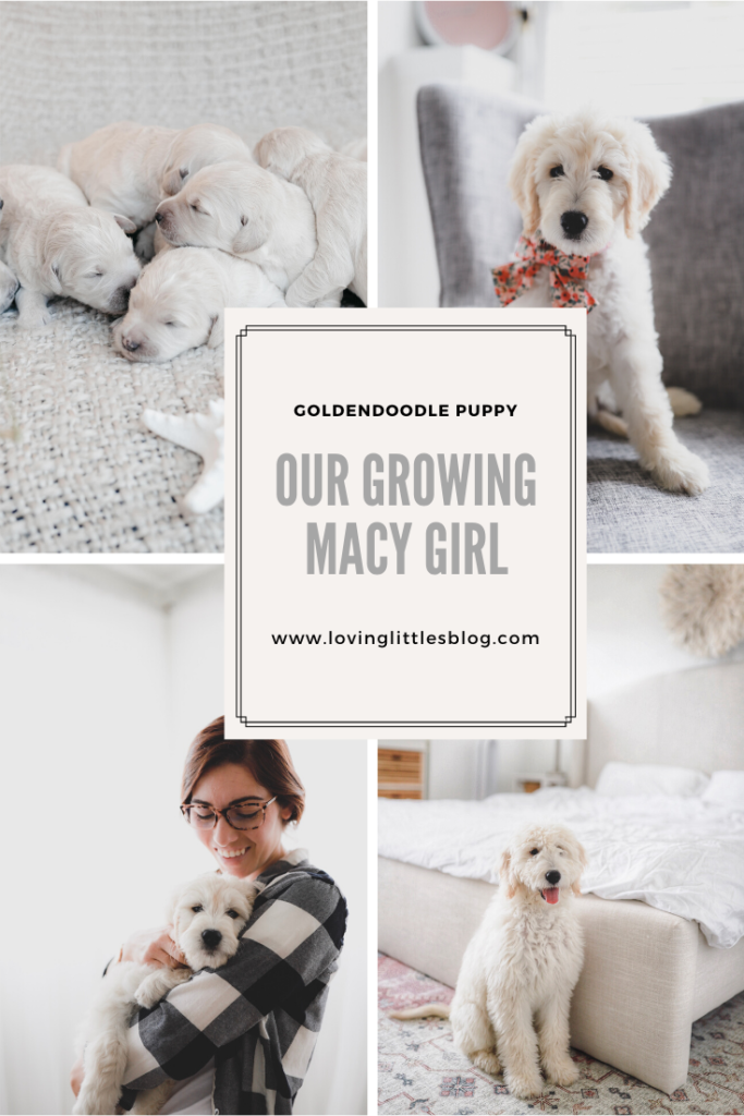 She’s bright eyed and full of energy. She’s precious! I’ve shared not that long ago that our Golden doodle Macy had her first litter of puppies. She had nine to be exact! So many. We had the opportunity to bring home a puppy if we liked and really took a long time to discuss this as a family. Each of us shared their thoughts and this discussion really lasted about a full year until we fully decided on what we were going to do. Really it was a big decision!